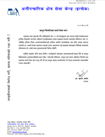 नियम उल्लंघन गरे ‘ट्राफिक स्वयंसेवक’ खटाउने कार्य रोक्न इन्सेकको माग