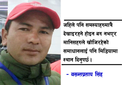 जहिले पनि समस्याहरुमात्रै देखाइरहने होइन बरु नभएर मानिसहरुले खोजिरहेको समाधानलाई पनि मिडियामा स्थान दिनुपर्छ ।