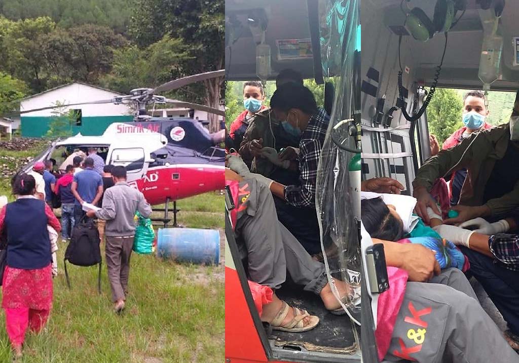 बझाङ– सुत्केरी शल्यक्रिया पछि अत्याधिक रक्तश्राव भई सिकिस्त भएकी महिलाको २० घण्टा पछि उद्धार भएको छ । सुर्मा गाउँपालिकाकी २८ बर्षिय लक्ष्मीदेवी बोहराको सोमबार साँझ सिम्रिक एयरको हेलिकप्टर मार्फत उद्धार गरिएको हो । आइतवार देखी सिकिस्त बोहराको सोमबार साँझ ६ वजे तिर उद्धार गरिएको हो ।