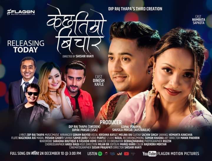 बझाङ । हाल स्वीडेनमा विद्यावारिधी गरिरहेका, पेशामा स्वास्थकर्मी र बैज्ञानिक भएता पनि नेपाली रङ्गमन्च, कलाकारिता र गीत सङ्गीतलाई सबै भन्दा बढी माया गर्ने दिपराज थापाले आफ्नो तेस्रो गीत बजारमा ल्याएका छ्न। थापाले धेरै गीतहरू लेखेका भएपनी औपचारिक रुपमा युटुबमा रिलिज गरिएका ” मस्किएर”, ” कोरोनाले परदेशमा” पछि ” के छ तिम्रो बिचार” तेश्रो गीत र म्जुजिक भिडीयो हो जुन मङ्सिर २४, डीसेम्बर १० का दिन युटुव बाट रिलिज गरिएको छ।