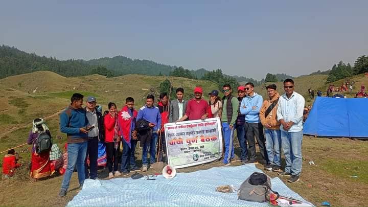 खप्तडको पर्यटन पवद्र्वनका लागि हातेमालो भन्ने मुल नाराका साथ विहिबार भु–स्वर्गको रुपमा परिचित खप्तड राष्ट्रिय निकुञ्जमा बसेको बैठक नेपाल पत्रकार महासंघ बझाङ शाखाका अध्यक्ष शैलेन्द्र रोकायाको अध्यक्षतामा जेठ २६ गते सम्पन्न भएको छ ।