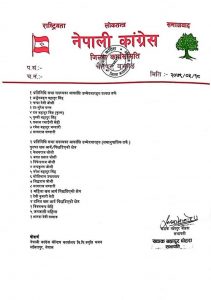 त्यस्तै चन्दादेवी जोशी, डा.सुरेश मल्ल, दलबहादुर विष्ट (कृष्ण), पृथ्वीबहादुर सिंह, प्रकाश रसाइली स्नेही, रमेशबहादुर भण्डारी र सत्यराज भण्डारी गरी आठ जनाको नेताको नाम सिफारिस गरिएको नेपाली कांग्रेस जिल्ला कार्य समितिका प्रवक्ता रमानन्द जोशीले बताए ।