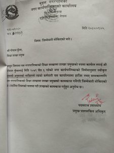 यस अघि नगरपालिकामा देवराज जोशीले निमित्त प्रमुख प्रसाशकीय अधिकृतको जिम्मेवारी पाएपछि नगरप्रमुख धामीले कार्यपालिका बाट निर्णय नै नगराई एकल रुपमा गोपाल कुवरलाई नगरपालिकामा काजमा ल्याएर शिक्षा शाखा प्रमुखको जिम्मेवारी दिनुभएको थियो । राजनितीक दवाबका कारण कामगर्न नसक्ने भन्दै अधिकृत जोशीले निमित्त प्रमुख प्रशासकीय अधिकृत भएर काम गर्न नसक्ने भन्दै राजिनिनामा दिनुभएको थियो । पहिलेनै निमित्त प्रमुख प्रशासकीय अधिकृत बाट राजिनामा दिएर फेरी शिक्षा शाखामा फर्किए पछि शिक्षा शाखा प्रमुखको जिम्मेवारी जोशीलेनै पाउने निर्णय भएको थियो र बिशिष्टता र छैठौँ तहको शिक्षा अधिकृत स्थायी भएकोले जोशीले शिक्षा शाखा प्रमुख पाउनुपर्ने हुन्छ । तर नगरकार्यपालिको गत चैत्र ६ गतेको बैठकले अधिकृत जोशीको जिम्मेवारी खोस्दै शिक्षा शाखा प्रमुखको जिम्मेवारी कारारमा कार्यरत कर्मचारी गोपाल कुवँरलाई दिने निर्णय गरेको थियो । सो निर्णयमा नगर उपप्रमुख धन बहादुर बोहरा लगायतका केहि जनप्रतिधिले शिक्षा अधिकृतलाई हटाएर करारको कर्मचारीलाई शाखा प्रमुख राख्न नमिल्ने भन्दै फरक मत पनि राखेका थिए । तर बहुमतका आधारमा कार्यपालिका बाट उक्त निर्णय पास भएपछि प्रमुख प्रशासकीय अधिकृत पदमराज उपाध्यायले कार्यपालिकाको निर्णयका आधारमा बैशाख ५ गते कुवरलाई शिक्षा शाखा प्रमुखको जिम्मेवारी दिएका छन् । नगरपालिकामा शिक्षा अधिकृत हुदाहुदै करारको कर्मचारीलाई शाखा प्रमुखको जिम्मेवारी दिएपछि नगरपालिकाको शिक्षा शाखाका कामहरु प्रभावित भएका छन् । सरकारले करारको कर्मचारीहरुलाई प्राबिधिक कामहरु गर्ने अधिकार दिएको भएपनि नगरपालिका भित्रका विद्यालयमा कार्यरत शिक्षकहरुको कार्यसम्पादन फाराम, शिक्षकको विदा प्रमाण्ति , पेन्सन , कर्मचारी संञ्चय कोष लगायतका प्रसाशनिक कामहरु गर्ने अधिकार नभए पछि समस्या भएको हो । कार्यसम्पादन मुल्याङ्कन स्थायी कर्मचारीलेनै गर्नुपर्ने र काररका कर्मचारीले नगरपालिका भित्रका स्थायी शिक्षकहरुको कार्यसम्पादन फाराम , विदा प्रमाणित लगायतका कामहरु गरेर पठाए पनि शिक्षा निर्देशनालयले नमान्ने भएकाले स्थायी शिक्षकको बढुवाको ढोका नै बन्द भएको छ । शिक्षा ऐनमा कार्यसम्पादन मुल्याकंन स्थानीय तहको शिक्षा अधिकृतले गर्नुपर्ने र त्यो नभएको हकमा शिक्षा विकास समन्वय उपप्रमुखले गर्नुपर्ने प्रबधान रहेको छ ।