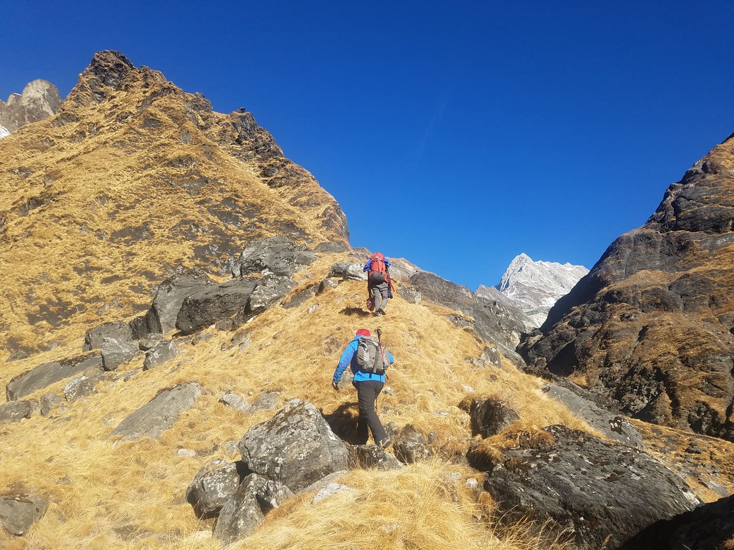सबैभन्दा अगाडि नवराजजी र म थियौँ, ढुङ्ग्यान गोरेटो र भिराला पहराहरू पढ्दै ।