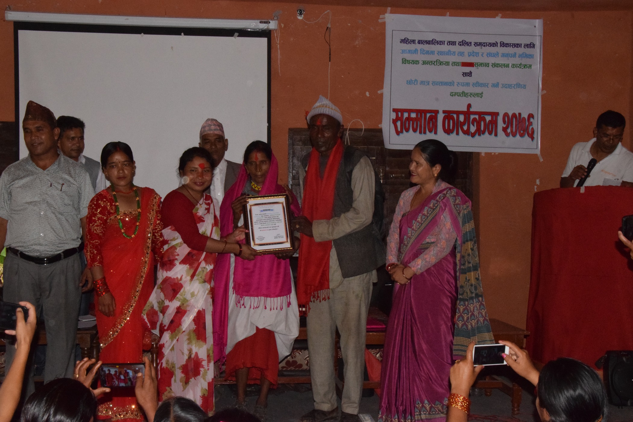 सहभागीहरुले खचाखच भरिएको जिल्ला समन्वय समितिको हलमा छोरी लाई मात्र सन्तानको रुपमा स्विकार गर्ने र छोराको आसमा बहु विवाह, श्रीमती माथी हिंसा नगर्नेहरुलाई सम्मान गरिएको थियो । सम्मान गर्नका लागि प्रतिनिधी सभा सदस्य आसाकुमारी विक, पुर्व सभासद अफिलाल ओखेडा, जिल्ला समन्वय समितिका प्रमुख खड्गबहादुर खड्का, जयपृथ्वी नगरपालिकाका प्रमुख विरेन्द्र बहादुर खड्का, विभिन्न स्थानिय तहका प्रमुख उपप्रमुख लगायत स्थानियहरु उपस्थित थिए ।